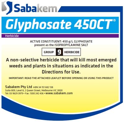 Our Product Range Quality crop protection without compromise Search for: < Back To Products Glyphosate 450CT HERBICIDE Active Constituent: 450 g/L Glyphosate Product Label Safety data sheet